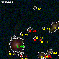 Object #250 x,y = (1369, 3128) RA, Dec = (01:37:29.688, -8:26:43.80) = (24.37370, -8.44550) BPZ = 0.209 [0.108--4.305] type = 3.90 (Ell4_A_0 - Ell5_A_0) chisq2 = 2.02 ODDS = 0.18 z_cluster = 0.566