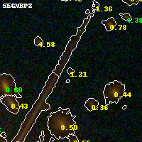 Object #319 x,y = (2798, 2958) RA, Dec = (01:37:23.928, -8:26:54.24) = (24.34970, -8.44840) BPZ = 1.205 [0.308--1.980] type = 9.40 (SB2_B10 - SB3_B10) chisq2 = 0.34 ODDS = 0.25 z_cluster = 0.566