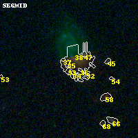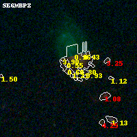 Object #33 x,y = (2117, 3502) RA, Dec = (01:37:26.664, -8:26:21.48) = (24.36110, -8.43930) BPZ = 0.685 [0.109--3.331] type = 8.70 (SB2_B10 - SB1_B10) chisq2 = 0.82 ODDS = 0.21 z_cluster = 0.566