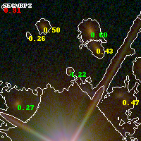 Object #357 x,y = (2677, 2880) RA, Dec = (01:37:24.408, -8:26:58.92) = (24.35170, -8.44970) BPZ = 4.223 [4.126--4.347] type = 8.90 (SB2_B10 - SB1_B10) chisq2 = 0.87 ODDS = 1.00 z_cluster = 0.566