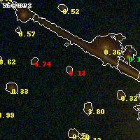 Object #378 x,y = (2469, 2835) RA, Dec = (01:37:25.248, -8:27:01.44) = (24.35520, -8.45040) BPZ = 0.126 [0.063--4.435] type = 4.00 (Ell4_A_0) chisq2 = 1.15 ODDS = 0.13 z_cluster = 0.566