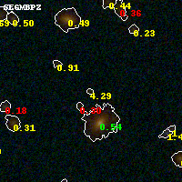 Object #416 x,y = (2088, 2772) RA, Dec = (01:37:26.784, -8:27:05.40) = (24.36160, -8.45150) BPZ = 4.285 [0.147--4.727] type = 9.30 (SB2_B10 - SB3_B10) chisq2 = 0.51 ODDS = 0.29 z_cluster = 0.566
