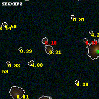 Object #429 x,y = (2004, 2737) RA, Dec = (01:37:27.120, -8:27:07.56) = (24.36300, -8.45210) BPZ = 0.308 [0.218--0.677] type = 3.00 (Ell5_A_0) chisq2 = 0.13 ODDS = 0.74 z_cluster = 0.566