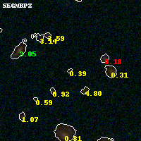 Object #432 x,y = (1945, 2739) RA, Dec = (01:37:27.360, -8:27:07.20) = (24.36400, -8.45200) BPZ = 0.386 [0.134--4.154] type = 7.60 (SB1_B10 - Scd_B10) chisq2 = 0.16 ODDS = 0.06 z_cluster = 0.566