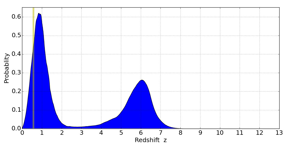 Best viewed in a wide browser window (1200 pixels or more). Download SED & P(z) plots to view larger versions.