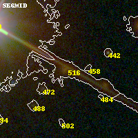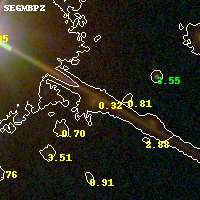 Object #516 x,y = (2787, 2699) RA, Dec = (01:37:23.952, -8:27:09.72) = (24.34980, -8.45270) BPZ = 0.322 [0.286--0.406] type = 5.00 (ES0_B10) chisq2 = 0.14 ODDS = 0.83 z_cluster = 0.566
