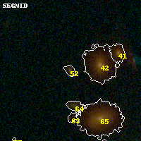 Object #52 x,y = (3210, 3488) RA, Dec = (01:37:22.248, -8:26:22.20) = (24.34270, -8.43950) BPZ = 0.660 [0.522--0.875] type = 8.20 (SB1_B10 - SB2_B10) chisq2 = 0.52 ODDS = 0.57 z_cluster = 0.566