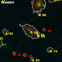 Object #614 x,y = (3330, 2384) RA, Dec = (01:37:21.768, -8:27:28.44) = (24.34070, -8.45790) BPZ = 0.596 [0.456--0.682] type = 7.80 (SB1_B10 - Scd_B10) chisq2 = 0.24 ODDS = 0.74 z_cluster = 0.566