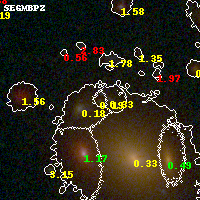 Object #772 x,y = (2109, 2115) RA, Dec = (01:37:26.712, -8:27:44.64) = (24.36130, -8.46240) BPZ = 0.189 [0.082--4.064] type = 3.50 (Ell4_A_0 - Ell5_A_0) chisq2 = 0.22 ODDS = 0.63 z_cluster = 0.566