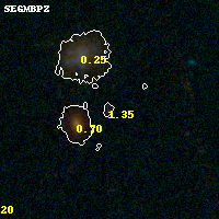 Object #789 x,y = (3614, 2083) RA, Dec = (01:37:20.616, -8:27:46.80) = (24.33590, -8.46300) BPZ = 1.353 [0.775--1.814] type = 9.50 (SB3_B10 - SB2_B10) chisq2 = 0.35 ODDS = 0.36 z_cluster = 0.566