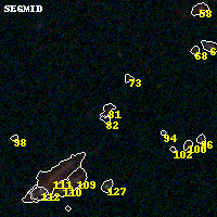 Object #81 x,y = (2087, 3370) RA, Dec = (01:37:26.784, -8:26:29.40) = (24.36160, -8.44150) BPZ = 1.744 [1.265--2.412] type = 9.30 (SB2_B10 - SB3_B10) chisq2 = 0.66 ODDS = 0.37 z_cluster = 0.566