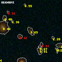 Object #817 x,y = (3432, 2018) RA, Dec = (01:37:21.360, -8:27:50.40) = (24.33900, -8.46400) BPZ = 0.650 [0.044--0.755] type = 8.00 (SB1_B10) chisq2 = 0.46 ODDS = 0.43 z_cluster = 0.566