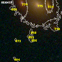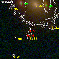 Object #858 x,y = (2122, 1971) RA, Dec = (01:37:26.640, -8:27:53.28) = (24.36100, -8.46480) BPZ = 3.498 [0.220--4.167] type = 9.30 (SB2_B10 - SB3_B10) chisq2 = 1.02 ODDS = 0.41 z_cluster = 0.566