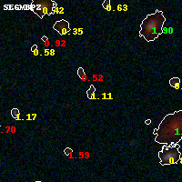 Object #882 x,y = (3223, 1916) RA, Dec = (01:37:22.200, -8:27:56.52) = (24.34250, -8.46570) BPZ = 1.115 [0.130--1.982] type = 9.40 (SB2_B10 - SB3_B10) chisq2 = 0.28 ODDS = 0.15 z_cluster = 0.566