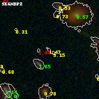 Object #91 x,y = (3197, 3349) RA, Dec = (01:37:22.296, -8:26:30.84) = (24.34290, -8.44190) BPZ = 1.470 [0.707--2.755] type = 9.80 (SB3_B10 - SB2_B10) chisq2 = 0.95 ODDS = 0.19 z_cluster = 0.566