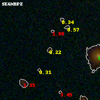 Object #935 x,y = (2043, 1824) RA, Dec = (01:37:26.976, -8:28:02.28) = (24.36240, -8.46730) BPZ = 0.217 [0.076--4.061] type = 4.10 (Ell4_A_0 - ES0_B10) chisq2 = 0.55 ODDS = 0.25 z_cluster = 0.566