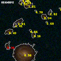 Object #958 x,y = (3554, 1786) RA, Dec = (01:37:20.856, -8:28:04.44) = (24.33690, -8.46790) BPZ = 0.558 [0.204--4.753] type = 3.00 (Ell5_A_0) chisq2 = 0.94 ODDS = 0.14 z_cluster = 0.566