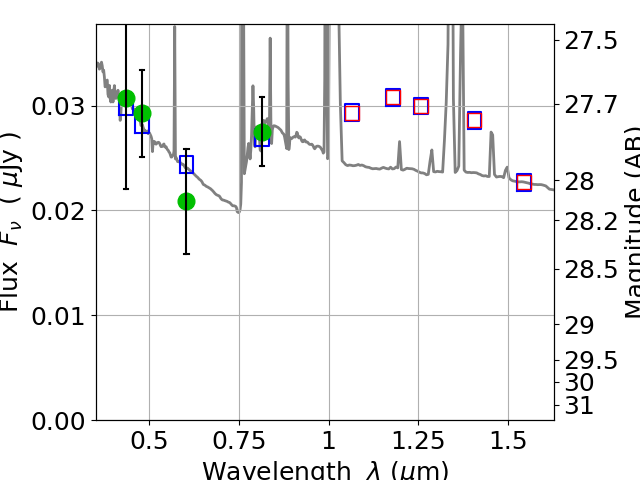 Best viewed in a wide browser window (1200 pixels or more). Download SED & P(z) plots to view larger versions.