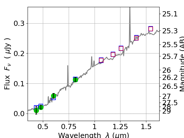 Best viewed in a wide browser window (1200 pixels or more). Download SED & P(z) plots to view larger versions.