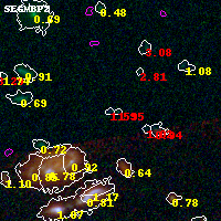 Object #1323 x,y = (2184, 3699) RA, Dec = (01:37:26.400, -8:26:09.60) = (24.36000, -8.43600) BPZ = 1.594 [1.093--2.560] type = 11.00 (SB11_A_0_l) chisq2 = 11.02 ODDS = 0.19 z_cluster = 0.566