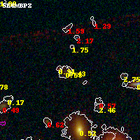 Object #1420 x,y = (2351, 3640) RA, Dec = (01:37:25.728, -8:26:13.20) = (24.35720, -8.43700) BPZ = 0.426 [0.133--3.547] type = 9.40 (SB2_B10 - SB3_B10) chisq2 = 0.40 ODDS = 0.11 z_cluster = 0.566