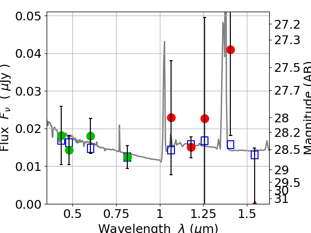 Best viewed in a wide browser window (1200 pixels or more). Download SED & P(z) plots to view larger versions.