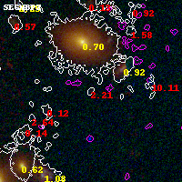 Object #1496 x,y = (3354, 3595) RA, Dec = (01:37:21.672, -8:26:15.72) = (24.34030, -8.43770) BPZ = 2.205 [0.530--2.890] type = 11.00 (SB11_A_0_l) chisq2 = 2.83 ODDS = 0.25 z_cluster = 0.566