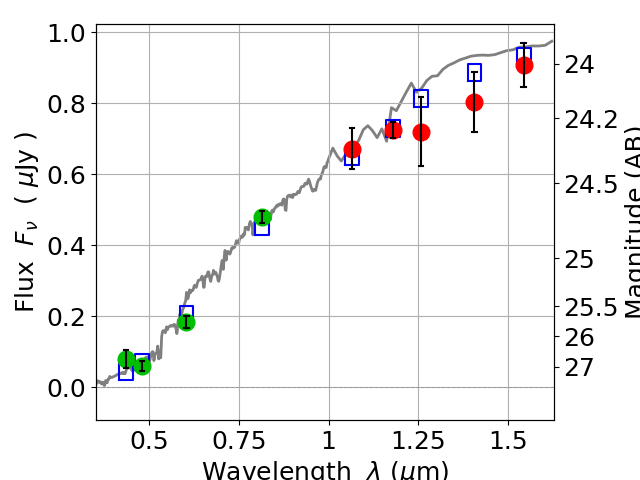 Best viewed in a wide browser window (1200 pixels or more). Download SED & P(z) plots to view larger versions.