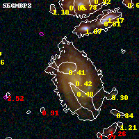 Object #1499 x,y = (2112, 3551) RA, Dec = (01:37:26.688, -8:26:18.60) = (24.36120, -8.43850) BPZ = 0.407 [0.290--0.502] type = 7.00 (Scd_B10) chisq2 = 0.25 ODDS = 0.79 z_cluster = 0.566