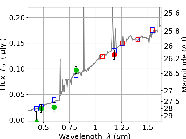 Best viewed in a wide browser window (1200 pixels or more). Download SED & P(z) plots to view larger versions.