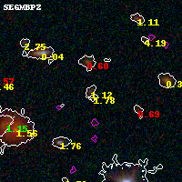 Object #1519 x,y = (2502, 3579) RA, Dec = (01:37:25.104, -8:26:16.80) = (24.35460, -8.43800) BPZ = 1.125 [0.058--2.773] type = 9.80 (SB3_B10 - SB2_B10) chisq2 = 0.84 ODDS = 0.14 z_cluster = 0.566