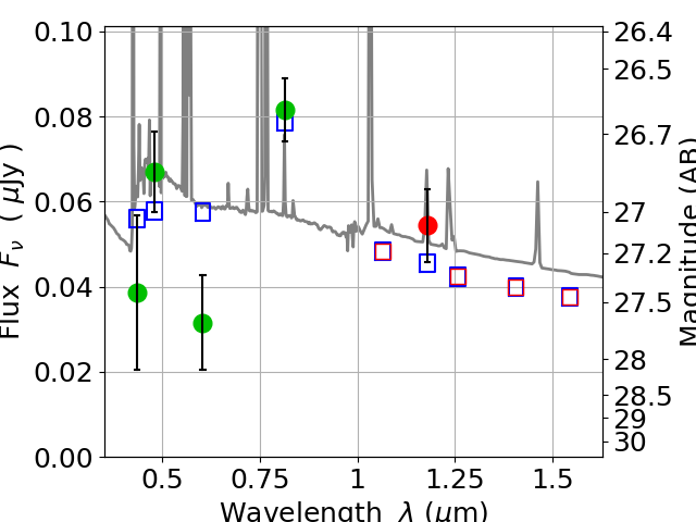Best viewed in a wide browser window (1200 pixels or more). Download SED & P(z) plots to view larger versions.