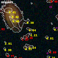 Object #1684 x,y = (2181, 3489) RA, Dec = (01:37:26.400, -8:26:22.20) = (24.36000, -8.43950) BPZ = 0.843 [0.221--1.136] type = 9.30 (SB2_B10 - SB3_B10) chisq2 = 0.86 ODDS = 0.32 z_cluster = 0.566