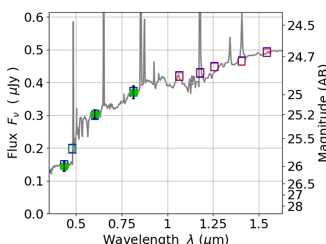 Best viewed in a wide browser window (1200 pixels or more). Download SED & P(z) plots to view larger versions.