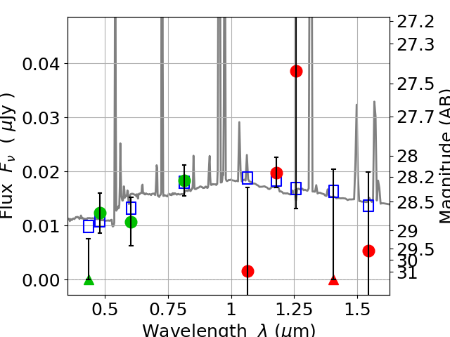 Best viewed in a wide browser window (1200 pixels or more). Download SED & P(z) plots to view larger versions.