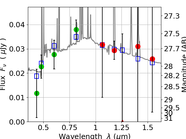 Best viewed in a wide browser window (1200 pixels or more). Download SED & P(z) plots to view larger versions.