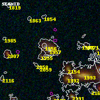 Object #1957 x,y = (3007, 3310) RA, Dec = (01:37:23.064, -8:26:33.00) = (24.34610, -8.44250) BPZ = 1.411 [1.394--1.871] type = 9.60 (SB3_B10 - SB2_B10) chisq2 = 0.19 ODDS = 0.58 z_cluster = 0.566