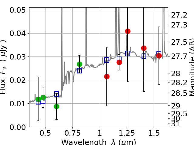 Best viewed in a wide browser window (1200 pixels or more). Download SED & P(z) plots to view larger versions.