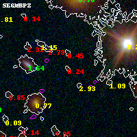 Object #1987 x,y = (3235, 3315) RA, Dec = (01:37:22.152, -8:26:32.64) = (24.34230, -8.44240) BPZ = 0.239 [0.116--3.840] type = 9.80 (SB3_B10 - SB2_B10) chisq2 = 1.88 ODDS = 0.13 z_cluster = 0.566