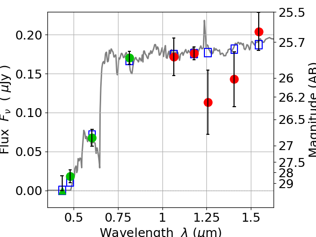 Best viewed in a wide browser window (1200 pixels or more). Download SED & P(z) plots to view larger versions.