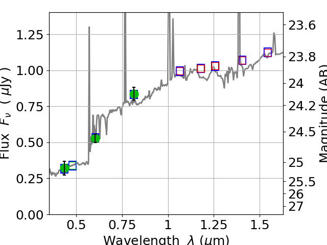Best viewed in a wide browser window (1200 pixels or more). Download SED & P(z) plots to view larger versions.