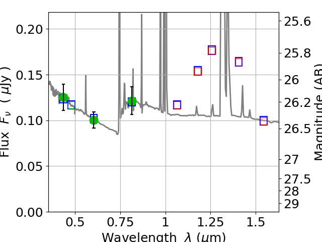 Best viewed in a wide browser window (1200 pixels or more). Download SED & P(z) plots to view larger versions.