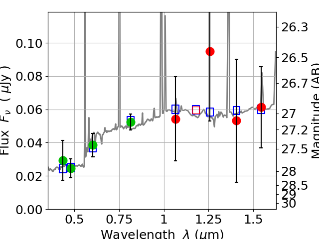 Best viewed in a wide browser window (1200 pixels or more). Download SED & P(z) plots to view larger versions.