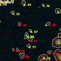 Object #2129 x,y = (1746, 3249) RA, Dec = (01:37:28.176, -8:26:36.60) = (24.36740, -8.44350) BPZ = 0.571 [0.207--3.973] type = 8.50 (SB2_B10 - SB1_B10) chisq2 = 0.44 ODDS = 0.14 z_cluster = 0.566