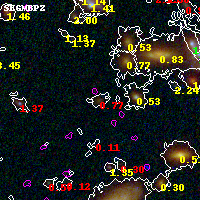 Object #2182 x,y = (3016, 3213) RA, Dec = (01:37:23.040, -8:26:38.76) = (24.34600, -8.44410) BPZ = 0.770 [0.441--0.921] type = 8.80 (SB2_B10 - SB1_B10) chisq2 = 1.34 ODDS = 0.41 z_cluster = 0.566