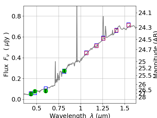 Best viewed in a wide browser window (1200 pixels or more). Download SED & P(z) plots to view larger versions.