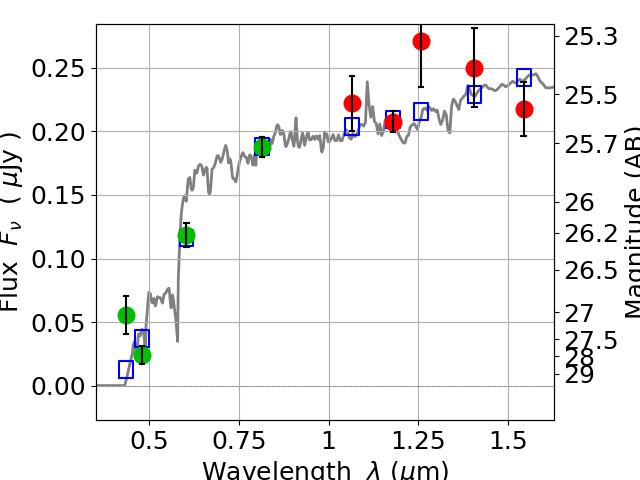 Best viewed in a wide browser window (1200 pixels or more). Download SED & P(z) plots to view larger versions.