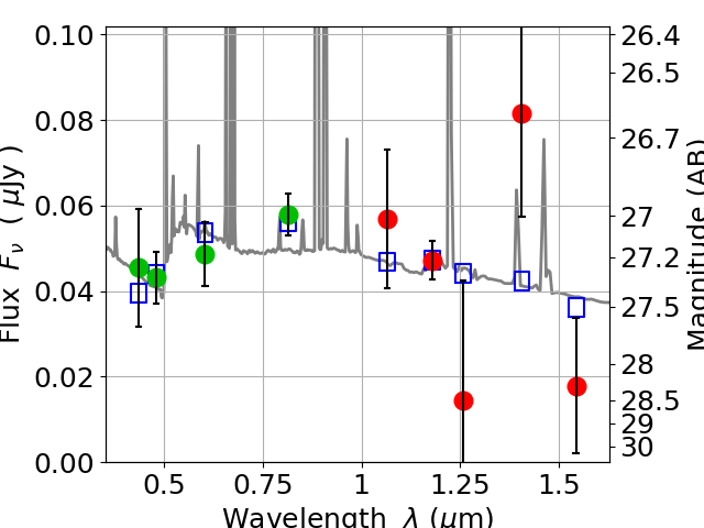 Best viewed in a wide browser window (1200 pixels or more). Download SED & P(z) plots to view larger versions.