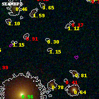 Object #2361 x,y = (2133, 3129) RA, Dec = (01:37:26.592, -8:26:43.80) = (24.36080, -8.44550) BPZ = 1.151 [0.565--3.136] type = 10.50 (SB11_A_0_l - SB3_B10) chisq2 = 0.77 ODDS = 0.11 z_cluster = 0.566