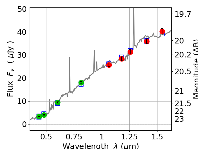 Best viewed in a wide browser window (1200 pixels or more). Download SED & P(z) plots to view larger versions.